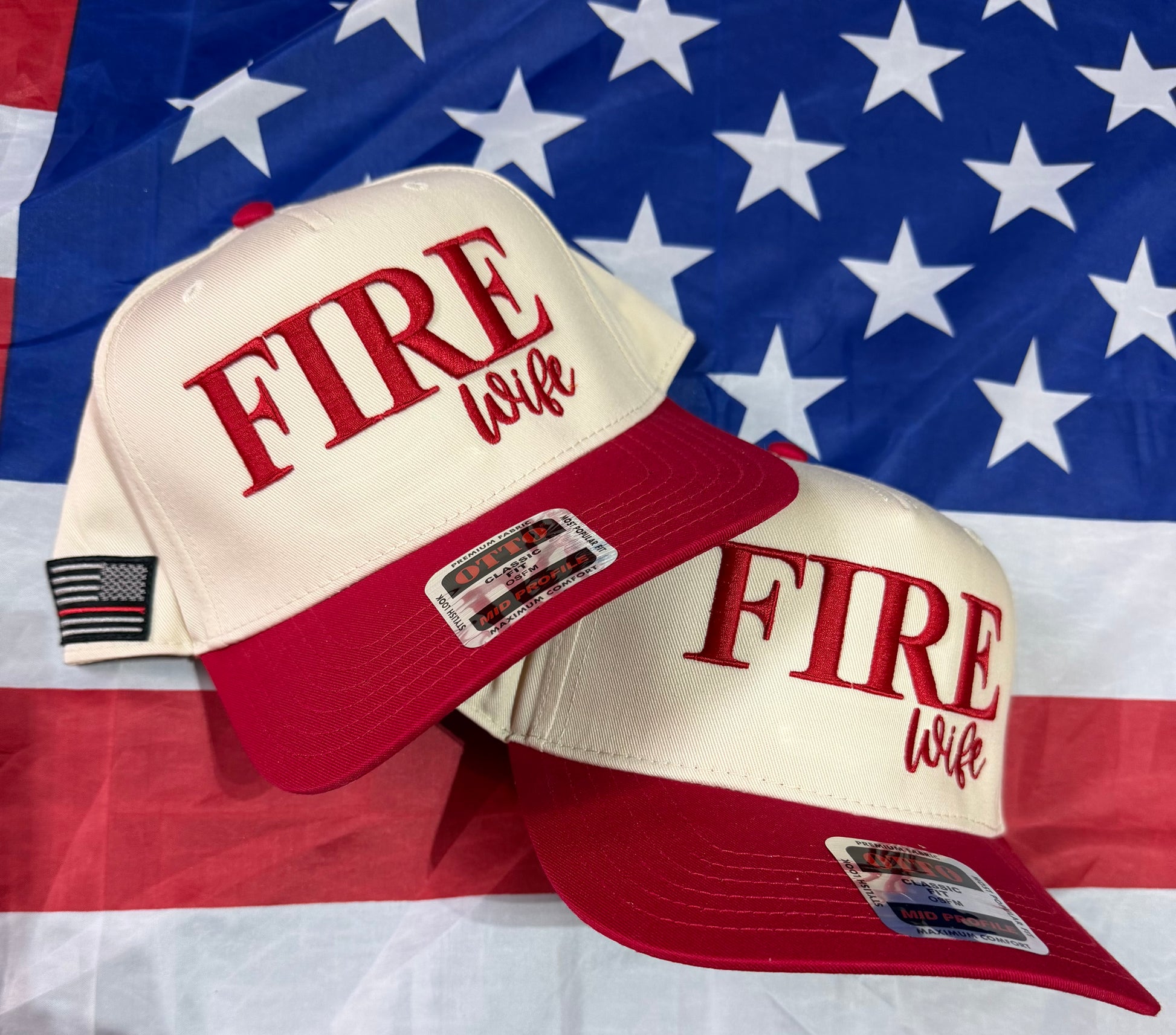 3D puff Fire Wife embroidered with Thin Red Line Flag on side of hat.
